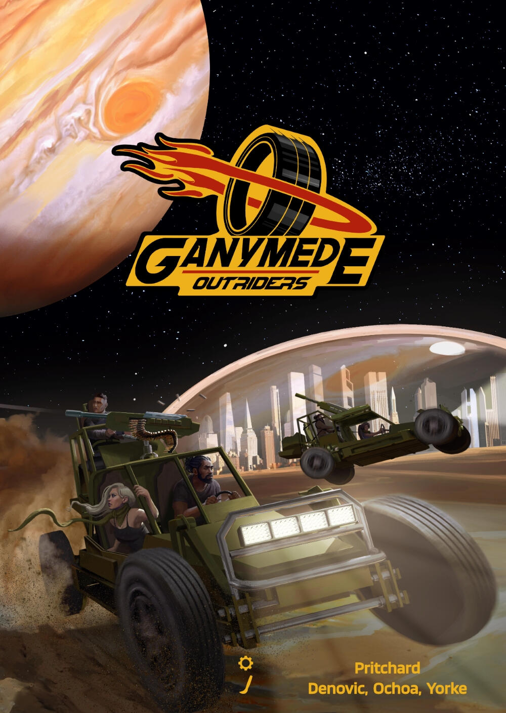 Beyond the domed settlements of Ganymede lies The Frost. Inhabited by separitists, gangs, and dissidents, The Frost is a dangerous and lawless place. And there are the raptors.As deadly as these frozen wilds might be, they still must be traversed. Magnetically accelerated delivery pods called Bullets regularly land wide of their targets and in this zone. BacFarms which maintain the thin atmosphere need to be kept online. Vast Dust Mills, largely abandoned, need to be cleared of whatever gangs are using them for shelter.This is the job of the Ganymede Outriders: to fix, retrieve, solve, deliver, transport, and defend…What is Ganymede Outriders?Ganymede Outriders is a big game in a little package. The game uses a custom designed system built for thematic and quick play; putting the emphasis on fun and high action.Ganymede Outriders includes a full RPG system, and is ideal for both one-shots and campaign play. It is designed to be played with 2 to 5 players and a GM.Ganymede Outriders is a 40 page A6 zine.